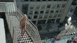 Hot blonde girl's walking nude on the stair